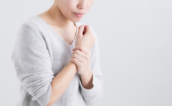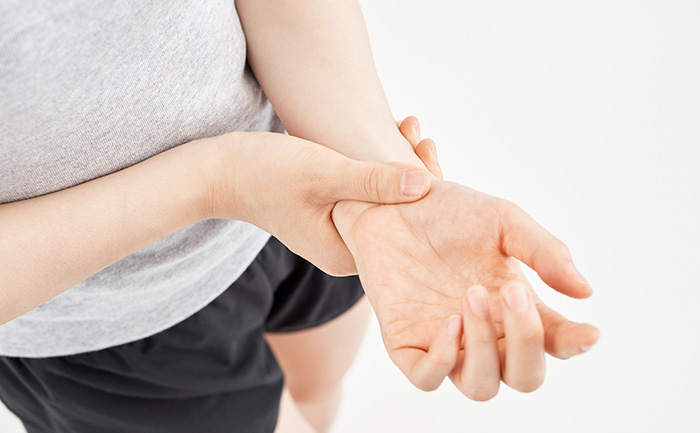 手の親指の付け根から手首にかけてジンジンするような痛みが特徴で、手を使うと症状が増悪します。